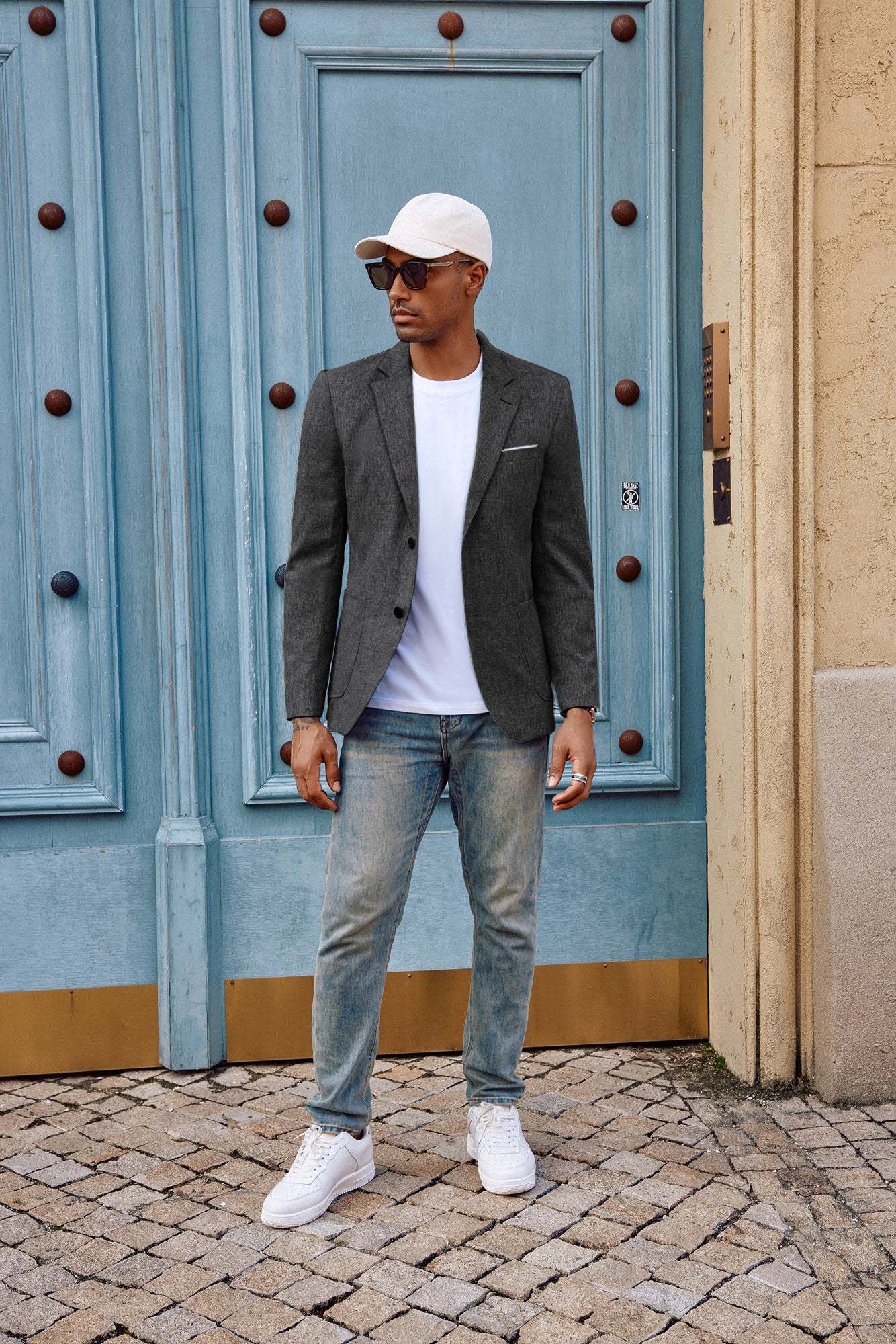 • VERSATILE MATCH: You can wear this mens lightweight suit jacket with tie, T-shirt, suit vest, shirt, turtleneck sweater, sweatshirt, casual pants, jeans, trousers, sneakers, leather shoes and so on. How to match clothes is no longer your trouble.