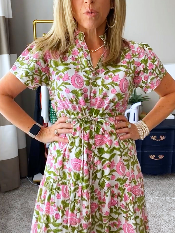 Timeless Elegance: Floral Print Elastic Waist Dress