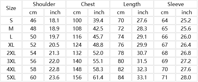 Sizes: S, M, L, XL, 2XL, 3XL, 4XL, 5XL