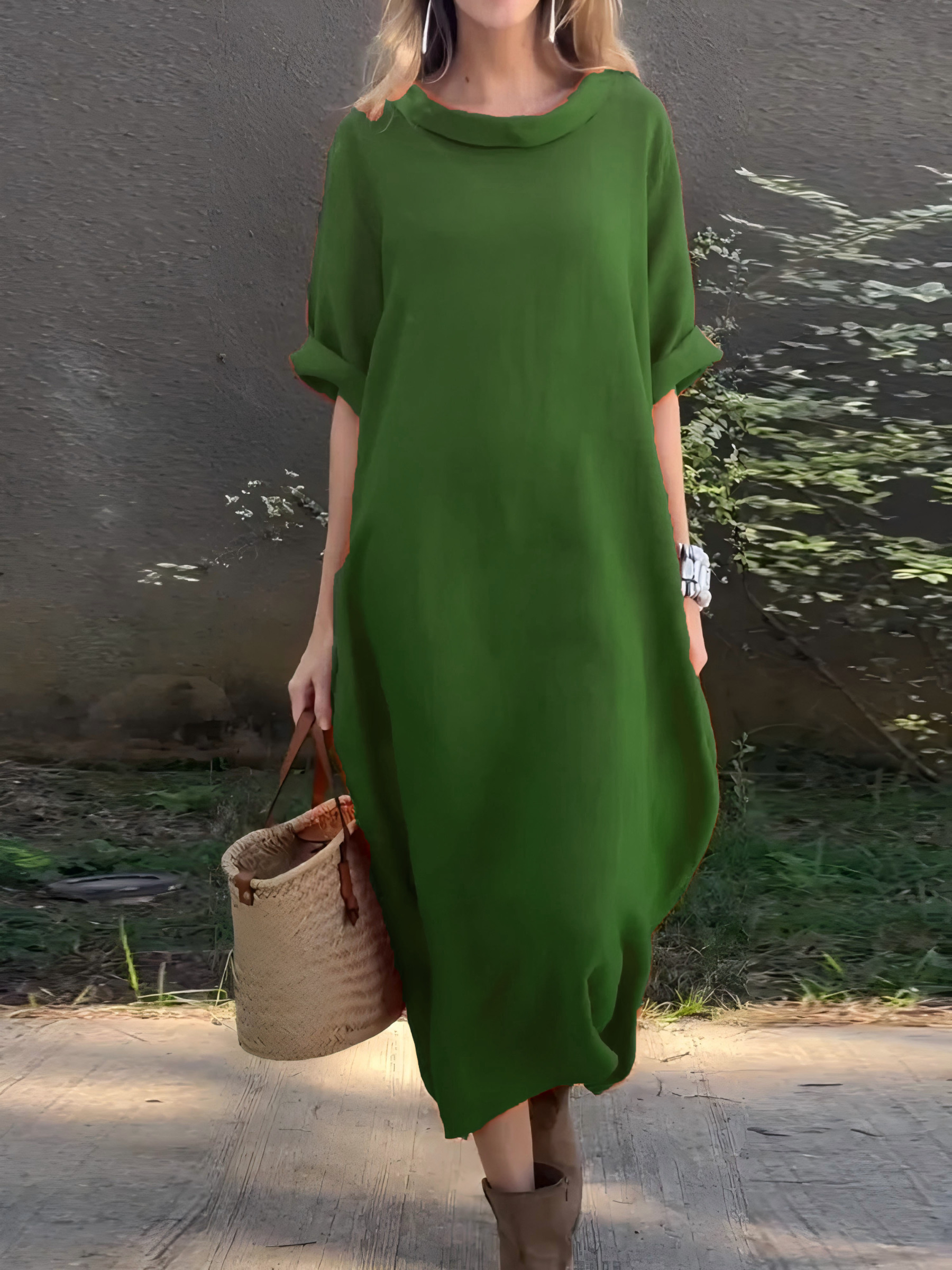 Women's Casual Solid Color Cotton and Linen Dress